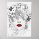 Une belle illustration d'imaginaire ! Ses lèvres rouge vif sont un merveilleux accent à l'illustration noir et blanc.