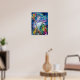 Poster FEMME DE NEIGE AVEC JOUETS, bleu blanc jaune