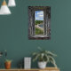 Poster Fenêtre en pierre encadrant une plage et des arbre