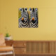 Un gros plan audacieux et frappant de deux zèbres. Cette oeuvre d'art moderne et contrastée est parfaite pour ajouter une touche design à tout espace.