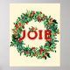 Grand mot "JOIE", français pour la "joie" à l'intérieur de la riche couronne à feuillage persistant bleue et rouge baies sur arrière - plan crème pour un décor domestique efficace et festif.