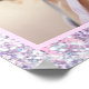 Jolie, glamour et féminine affiche de bienvenue pour une fête d'anniversaire sweet 16 avec sa photo, confettis holographiques scintillants violet, rose et argent le long des bordures sur fond rose et son nom dans une police tendance grise douce.