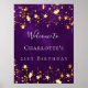 Poster fête d'anniversaire violet or étoiles bienvenue