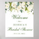 Bienvenue aux invités à votre mariage avec l'Affiche de Bienvenue de la Baby Shower Florale aux Roses Blanches, mettant en vedette une végétation botanique aquarelle luxuriante et des fleurs blanches, avec "bienvenue dans notre bonheur éternel", vos noms et date de mariage dans un mélange chic de caractères typographiques modernes et de calligraphie manuscrite.