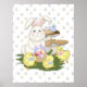 Petits poussins dansants avec oeuf rose pastel et arc. Design pastel mignon parfait pour les fêtes de Pâques et de Printemps.