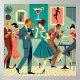 Poster Fête Moderne Du Milieu Du Siècle Martini Dance