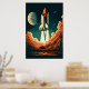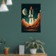 Cela représente une puissante fusée spatiale qui explose depuis la rampe de lancement et se dirige vers l'étendue infinie de l'espace. La fusée est entourée de nuages de fumée et de flammes, ajoutant au drame et à l'excitation de la scène. L'affiche ravira tous ceux qui s'intéressent au voyage et à l'exploration dans l'espace.