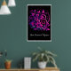 Ce poster saisissant présente un design botanique exquis dressé contre un arrière - plan noir profond. Des feuilles fuchsia et violet aux détails de veines complexes créent une composition luxuriante, complétée par d'élégants tourbillonnants qui dansent tout au long de l'arrangement. Le dégradé rose néon et bleu électrique donne au feuillage une qualité éthérée, presque bioluminescente qui semble briller dans l'obscurité. Des spirales délicates et de petits accents comme des baies ajoutent du mouvement et de la profondeur à la conception. En bas, l'élégant script cursif dit "Neon Botanical Elegance", capturant parfaitement l'esthétique moderne mais sophistiquée de cette oeuvre d'art numérique qui mêle formes naturelles et style néon contemporain.