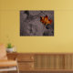 C'est une feuille colorée dans un paysage noir et blanc avec une empreinte de Lion de montagne et quelques aiguilles de pin pour le garder compagnie - sur une affiche!