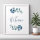 Panneau de bienvenue Eucalyptus avec calligraphie élégante et feuilles d'eucalyptus. Conception botanique simple et discrète avec feuillage aquarelle et verdure dans un bleu gris vert poussiéreux. Parfait pour un mariage, une douche de mariée, une baby shower, etc. sur le thème de la verdure botanique et de l'eucalyptus. Veuillez parcourir ma boutique - collection d'eucalyptus poussiéreux - pour les articles assortis.