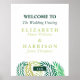 Ce signe de bienvenue mariage est parfait pour tout couple qui planifie une fête mariage tropicale. Le design feuille de palmiers tropicaux peut être personnalisé pour votre événement spécial et sera le poster de bienvenue parfait pour toute soirée sur le thème de la plage, y compris : la Saint Valentin, fiançailles, wedding showers, baby showers et bien plus encore.