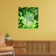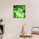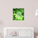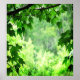 Cette affiche vous invitation à entrer dans un monde verdoyant de paix et de sérénité. Des feuilles d'érable foncé encadrent l'image, menant à une scène boisée ensoleillée avec des nuances de jaune, blanc et vert de forêt.