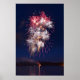 Feu d'artifice 4 juillet affiche du Jour de l'Indépendance. Soyez patriotique et célébrez l'Amérique avec cette photo moderne et tendance magnifiquement conçue. Couleurs rouge blanc et bleu. Photographie de Marg Seregelyi.