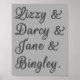Un design mignon, parfait pour tous ceux qui aiment les romans de Jane Austen. 'Lizzy & Darcy & Jane & Bingley' Fierté et préjugés sur un arrière - plan gris. Accentuez votre style et votre espace avec cet art mignon!