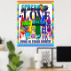 Étendre l'affiche Love Not Hate pour le mois de fierté. Les graphiques comprennent les coeurs, les arcs-en-ciel, le signe de paix.