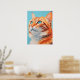 Un chat tabby orange vif regarde vers le haut avec des yeux bleus percevants, exsudant la confiance et la grâce contre un arrière - plan turquoise serein. Cette oeuvre audacieuse et colorée capture l'essence majestueuse de la beauté des félins.