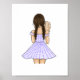 Jeune fille tenant un petit lapin brun-crème dans ses bras et sur ses épaules. La fille porte une robe de printemps à carreaux gingham violet pastel. Un design adorable pour avril et la décoration des nurseries. Design idéal pour la chambre d'une fille.