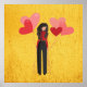 Image mignonne d'une fille tenant un tas de ballons en forme de coeur. Mignonne et capricieuse et ceinturée contre un fond doré texturé élégant.