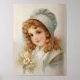 Cette jolie jeune femme du passé est adorable dans son casquette vert et son accent bouquet de marguerite.