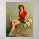 Poster Fille Pêche Avec Épingle De Chien Vers Le Haut