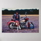 Les années 1980 pinup photo d'un modèle sur une moto customisée.