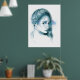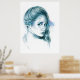 Poster Fille portrait dessin au crayon Bleu