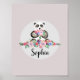 Poster Filles Belles Fleurs Aquarelle Panda et Nom