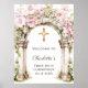 An antique marble arch decorated with blush pink watercolored florals. Personalize and add her name and the date.