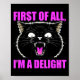 Poster First Of All I'm A Delight Roaring Black Cat Quote