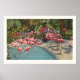 Une belle carte postale vintage de flamants, réorientée en 16 x 24 sur papier d'archives. Nous avons créé une bordure pour que l'image entière soit présentée dans un cadre.