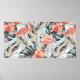 Poster Flamingo rose tropicale avec fleurs d'orchidées et