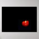 Image calmante de bougie rouge brûlée, montrant la flamme à travers le trou dans la cire. Arrière - plan noir.
