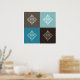 Poster Flèche Damask Pattern Carrés Teals Browns White