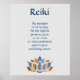 Poster design de fleurs de lotus bleu et or Reiki et poème. Thème - guérison spirituelle thérapie salon de thérapie de l'énergie spa "nouvel âge" décoration murale image