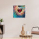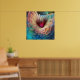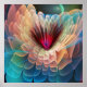 Cette impression a un design fractal avec la forme d'une fleur d'imaginaire magique et dans le coin supérieur droit une lune bleue. Les pétales transparents ont de belles couleurs rêveuses, bleu, rose, orange et crème.