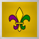 Design avec motif sans couture avec fleurs de lys aux couleurs de Mardi Gras à la Nouvelle-Orléans ; design violet, doré et vert sur arrière - plan jaune