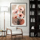 De gracieuses nénuphars aux tons vifs fleurissent vers le haut dans une composition aérée et sans poids encadrée par un délicat halo circulaire, suggérant une révérence céleste ou un emblème botanique sacré. Le style aquarelle translucide et les traits de whisky créent un sentiment de calme, tandis que les tons doux de corail, pêche et charbon de bois offrent contraste et équilibre. L'ajout d'un halo géométrique derrière les fleurs confère à cette pièce une qualité spirituelle, presque rituelle, qui lui donne l'impression d'être une icône florale moderne, parfaite pour un décor minimal mais émotionnellement riche.