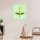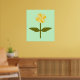 Cette impression colorée présente une image numérique d'une marguerite avec une tige verte avec deux feuilles verts et des pétales de couleur jaune clair et foncé. C'est un design simple, mais beau. L'arrière - plan est de couleur vert pâle avec une bordure vert foncé. Cette conception est disponible sur plusieurs tailles d'impression différentes, dont la plus grande est présentée ici.