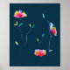 Design floral rose Abstrait inspiré de l'art japonais. Ce design floral rose sur arrière - plan marine avec des bourgeons bleus est simple et moderne esthétique propre.