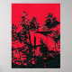 Un design d'art abstrait de fleurs sauvages noirs silhouette contre un ciel rouge.