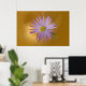Un seul fleur sauvage Mojave Aster, avec ses pétales violets sur fond jaune automnal.