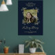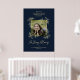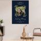 Affiche de mariage chic à lettrage manuel avec fioritures en bleu marine. Conception pour réserver le siège d'un être cher décédé avec une citation "À la mémoire de" et un design classique avec les noms et la date du mariage.