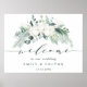Cette enseigne de bienvenue mariage est ornée d'une végétation hivernale peinte à la main, de fleurs de coton aux textures dorées et aquarelles. Pour une personnalisation plus avancée de cette conception, cliquez sur le lien "customiser plus loin". Des articles correspondants sont également disponibles.