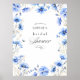 Fête des mariées affiche d'accueil avec élégante calligraphie et cadre floral aquarelle de jolies fleurs bleues. La modèle est conçue pour vous permettre de personnaliser et vous pouvez également changer le type de douche en wedding shower ou en couple douche par exemple. Cette délicate douche nuptiale en bleu et blanc est parfaite pour les thèmes de la douche nuptiale bleue, les thèmes botaniques et les wedding showers de printemps ou d'été. Pour coordonner les invitations, la papeterie et la décoration de jour de l'événement, veuillez consulter ma Collection de Fêtes des mariées florales Quelque chose de bleu ou m'envoyer un message pour ajouter des articles supplémentaires dont vous avez besoin.