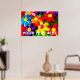 Bouquet de ballons gonflables en forme de fleurs de différentes couleurs. Joyeuses vacances ! Soyez heureux ! Juste une affiche pour vos besoins. Vous pouvez modifier ou supprimer le texte modèle