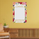 Ceci est un beau cadre d'accessoire de photo affiche avec des fleurs printanières roses, corail, pêche et bourgogne accentuées de lettrage calligraphique à paillettes