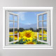 Poster Fleurs de soleil d'été Jardin Vue Faux Fenêtre