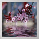 Fleur décorative de cerisier au-dessus de l'eau avec réflexion, effet numérique