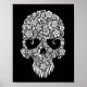 Poster Fleurs et vignes blanches Design crâne sur noir