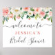 Accueillez vos invités à votre mariage avec l'Affiche de Shower de Mariage Bohème aux Fleurs Roses Élégantes, avec une végétation botanique aquarelle luxuriante et des fleurs blanches, avec "bienvenue dans notre pour toujours heureux", vos noms et date de mariage dans un mélange chic de typographies modernes et de calligraphie manuscrite.